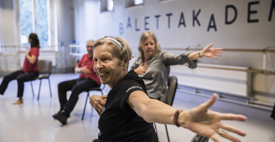 Balettakademien i Stockholm erbjuder flera kurser per vecka i Dans för Parkinson, både på plats och digitalt via Zoom. De har även klasser i neurodans och danshälsa.